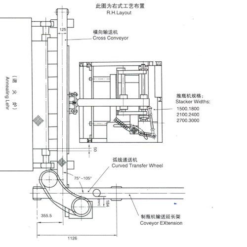 該機組是我廠在1988年消化吸收西德派尼康姆公司的技術制造的,具有國際九十年代先進水平,可與QD4A、QD6A、QD6C、QD8A、QD8D等單滴料制瓶機和六組 、八組、十組、十二組、雙滴料制瓶機配套使用;與供料機、制瓶機保持嚴格的同步運行,將玻璃制品連續(xù),等距離地自動排列,避免碰撞,倒伏,磨擦現(xiàn)象,有效地提高玻璃制品的合格率,并保證其退火質(zhì)量,為冷端噴涂提供了良好的條件,該機組適用于任何形式任何規(guī)格的退火爐,尤其適用于電加熱的退火爐。